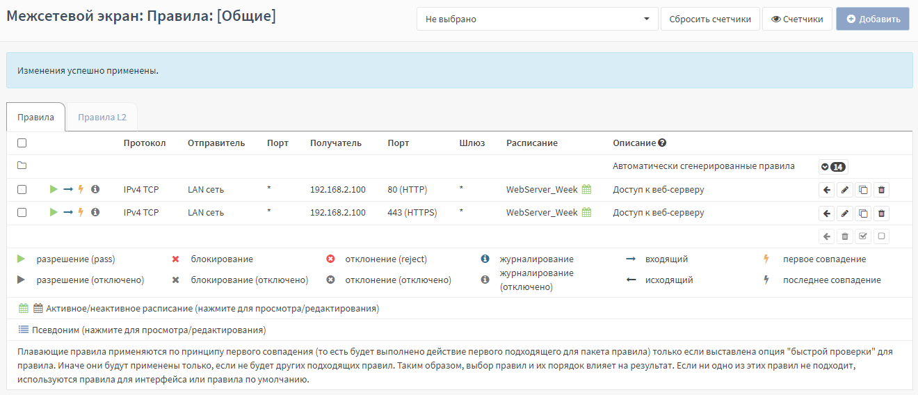 После создания расписания необходимо изменить правила МЭ для ограничения доступа к веб-серверу, выполнив следующие действия: