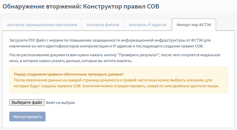 Для создания правила СОВ контроля передачи файлов необходимо выполнить следующие действия: