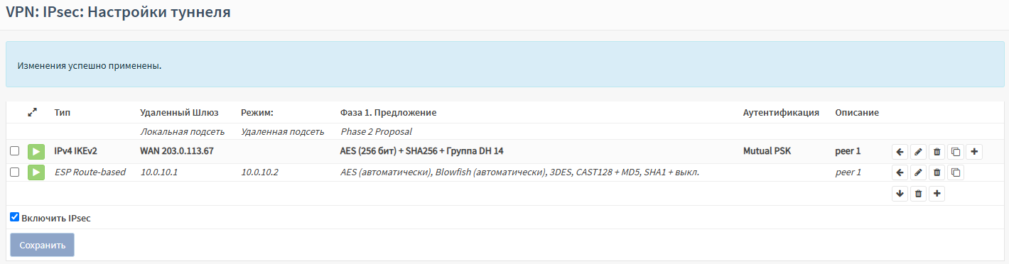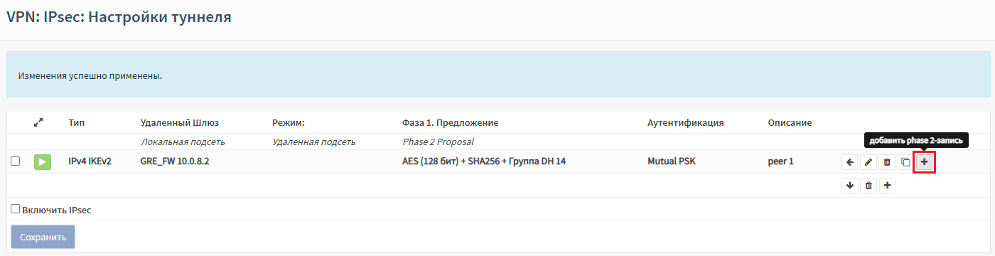Создание туннеля IPsec осуществляется в два этапа: