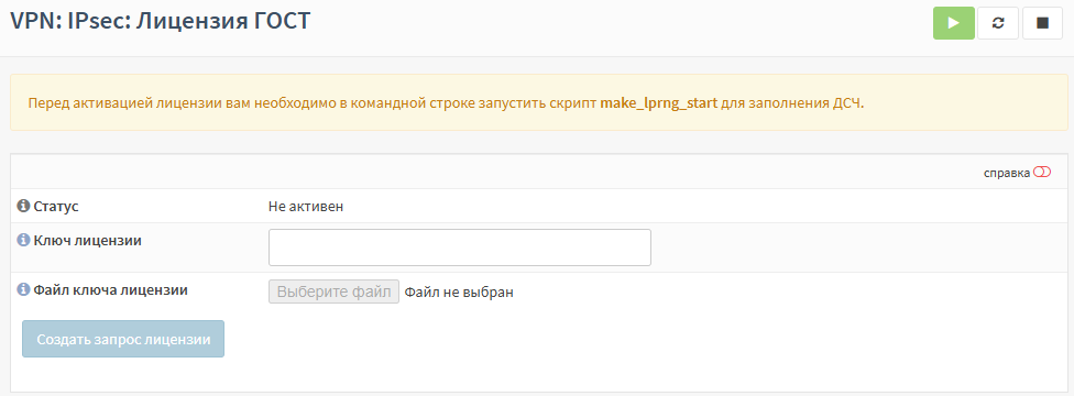 Для активации лицензии ГОСТ IPsec необходимо выполнить следующие действия: