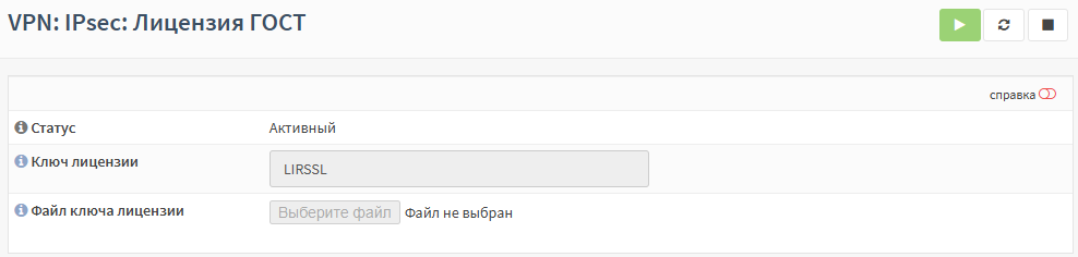 Перейти в подраздел лицензии ГОСТ IPsec («VPN» - «IPsec» - «Лицензия ГОСТ»).