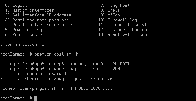 Лицензия ГОСТ VPN не входит в комплект поставки ARMA FW. Для использования функциональности необходимо приобрести лицензию «OpenVPN-ГОСТ» у вендора или дистрибьюторов.