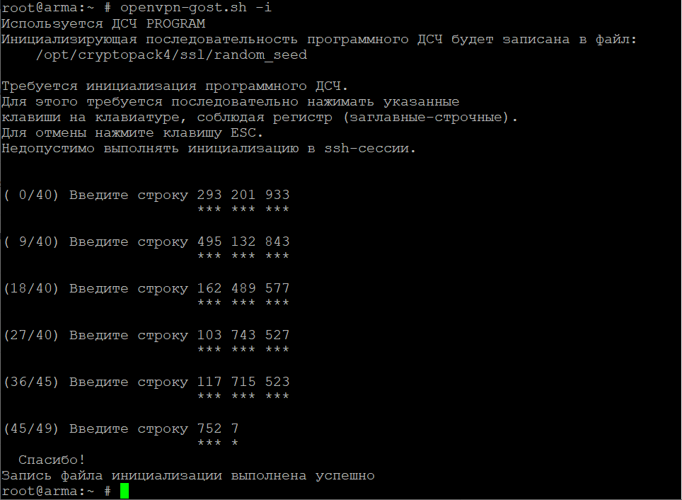 и нажать клавишу «ENTER» для запуска формирования файла инициализации программного ДСЧ. При обновлении лицензии запуск формирования файла инициализации программного ДСЧ не используется.