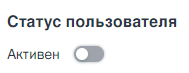 В карточке пользователя перевести переключатель «Статус пользователя» в положение «Заблокирован» (см. Рисунок – Статус пользователя: заблокирован).