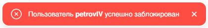 В случае успеха в левой нижней части экрана появится соответствующее уведомление (см. Рисунок – Уведомление о блокировке пользователя).