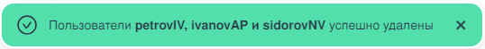 В случае успеха в левой нижней части экрана появится соответствующее уведомление (см. Рисунок – Уведомление об удалении пользователей).