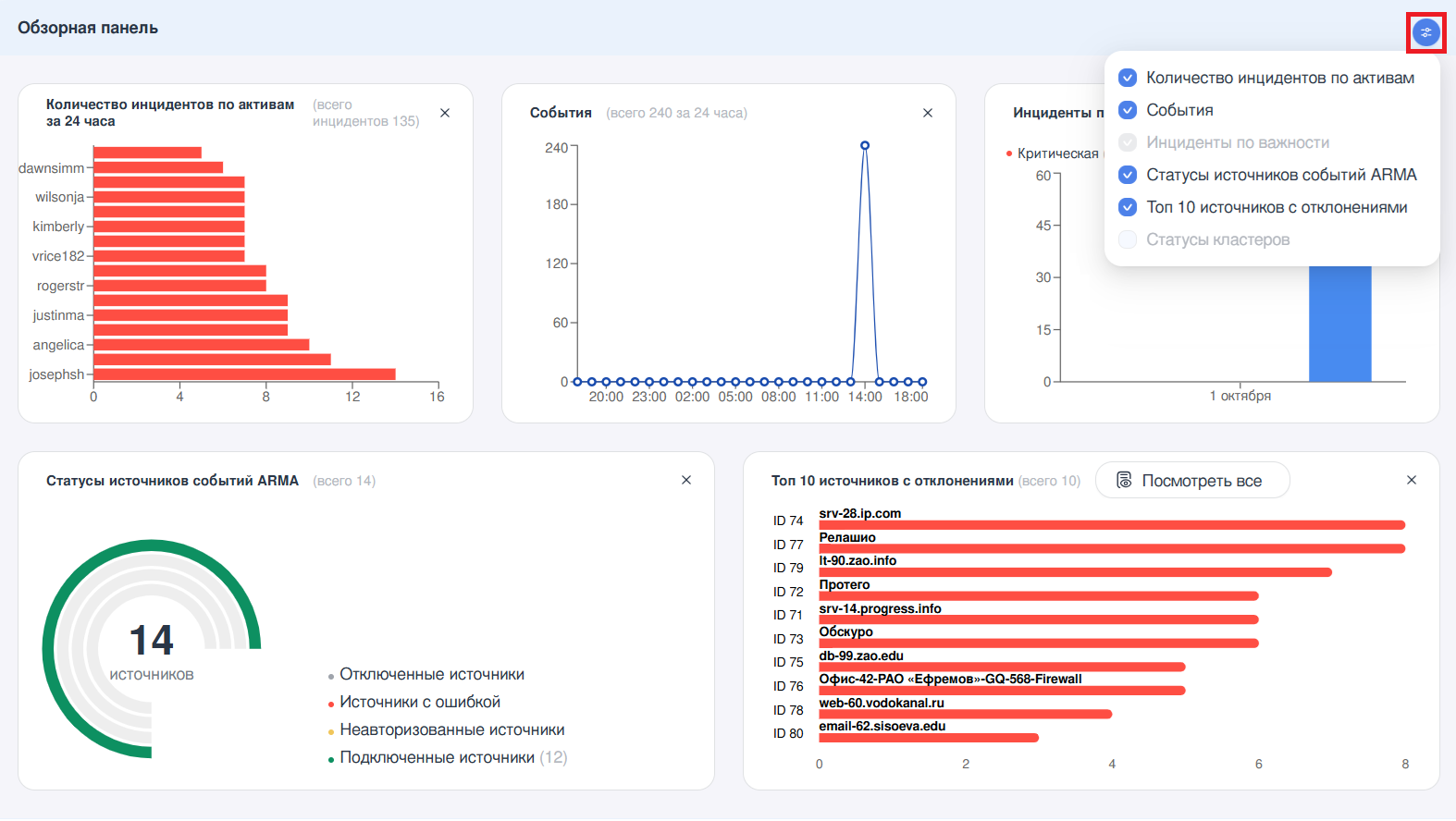 «Инциденты по важности» (см. Виджет «Инциденты по важности»);