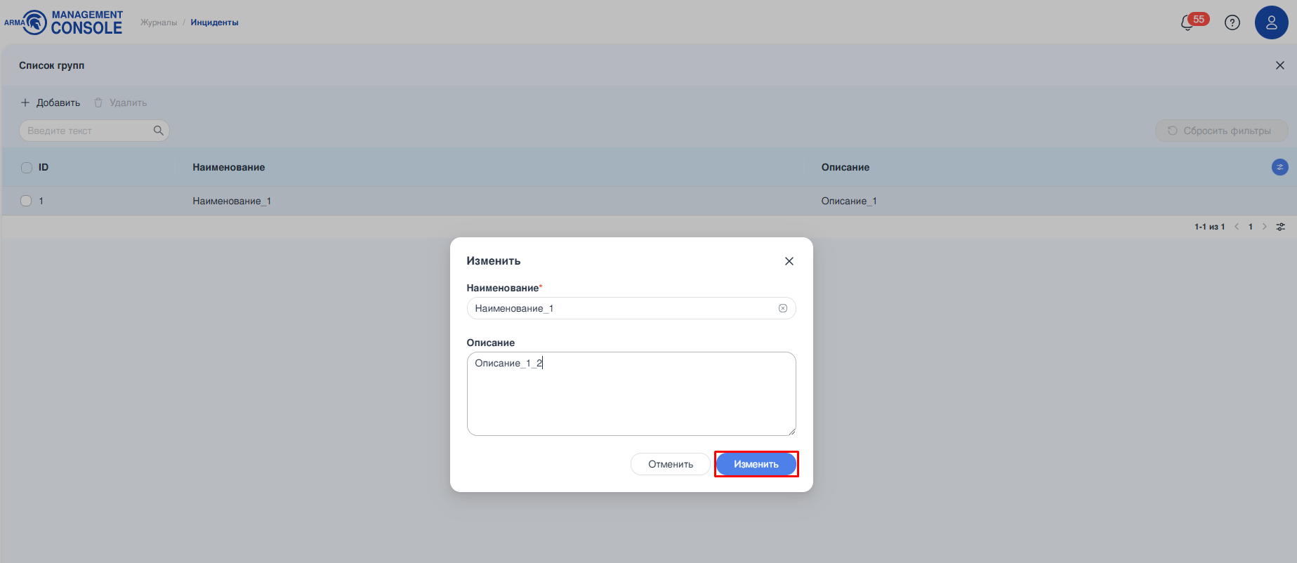 Для редактирования группы необходимо выполнить следующие действия (см. Рисунок – Изменение группы):