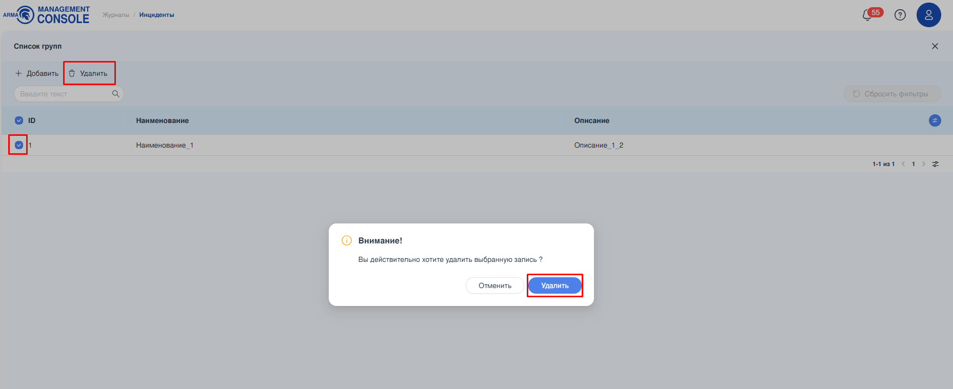 Для удаления группы необходимо выполнить следующие действия (см. Рисунок – Удаление группы):