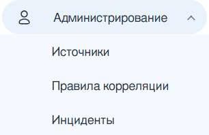 «Источники»/«Правила корреляции»/«Инциденты» – подраздел.
