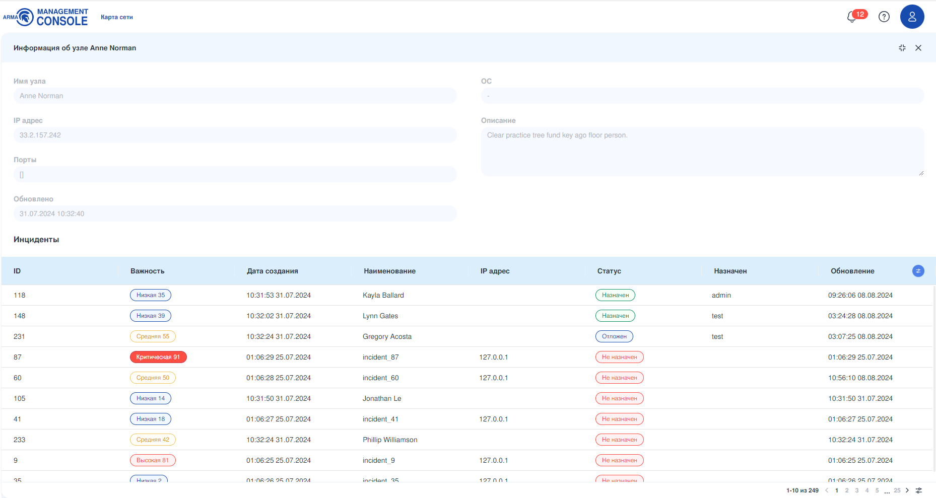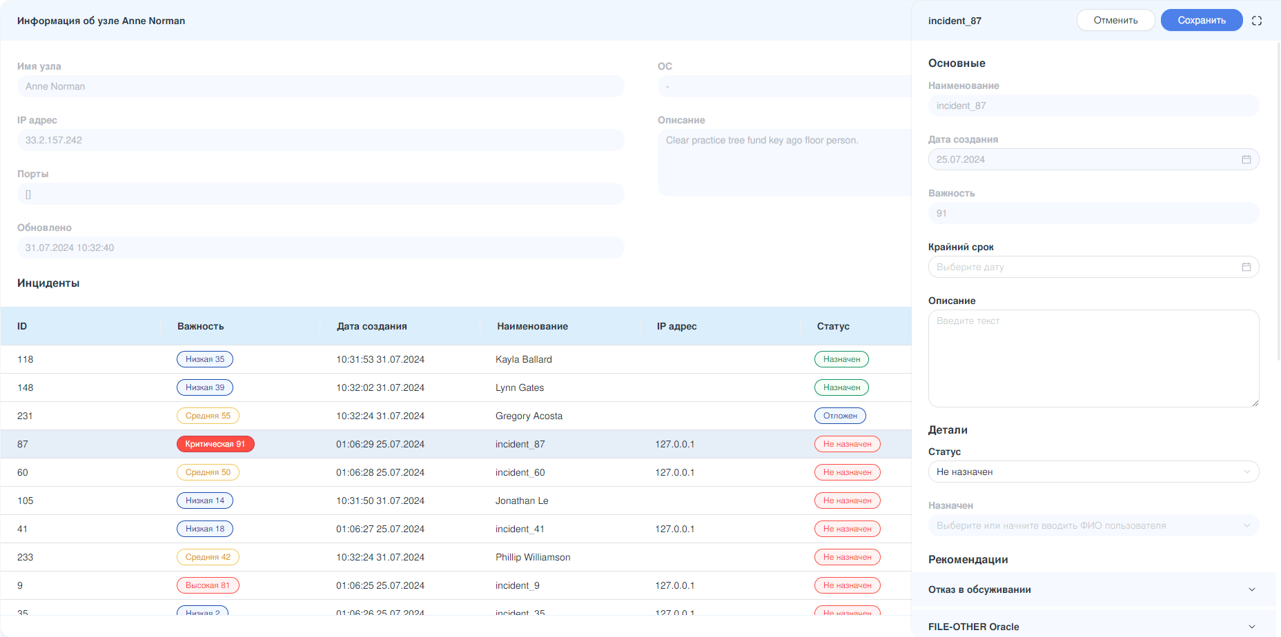 «Назначен» – имя пользователя, на которого назначен инцидент для расследования;