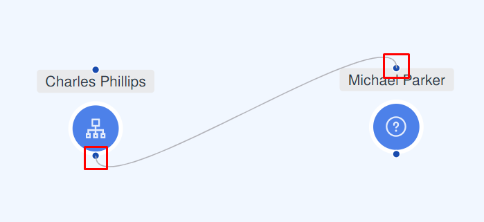 Для добавления связи между активами необходимо нажать на синюю точку связи вверху/внизу актива и, удерживая клавишу мыши зажатой, протянуть линию связи до точки связи другого актива (см. Рисунок – Связь между активами).