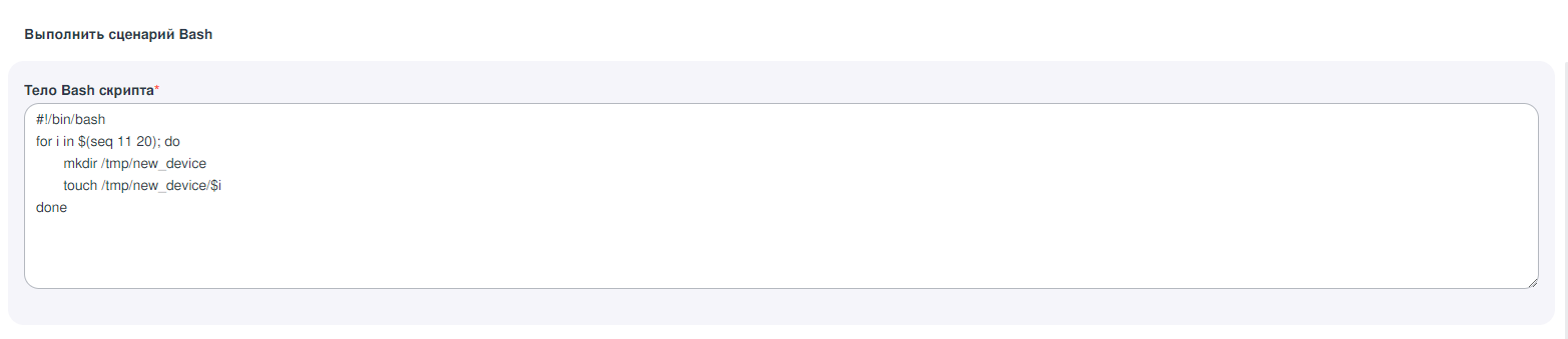 Тип действия «Выполнить сценарий Bash» позволяет при срабатывании определённых событий запускать сценарий написанного Bash-скрипта.