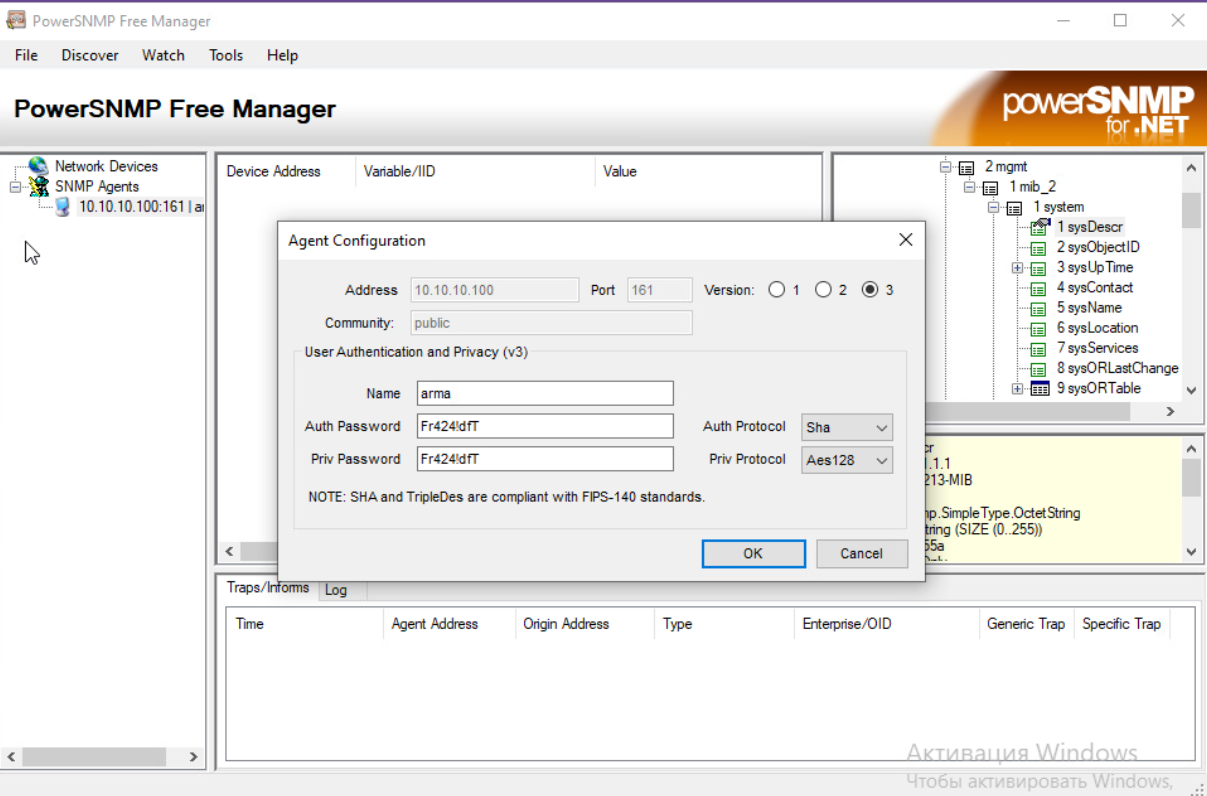 Для проверки работы SNMPv.3 необходимо выполнить следующие действия: