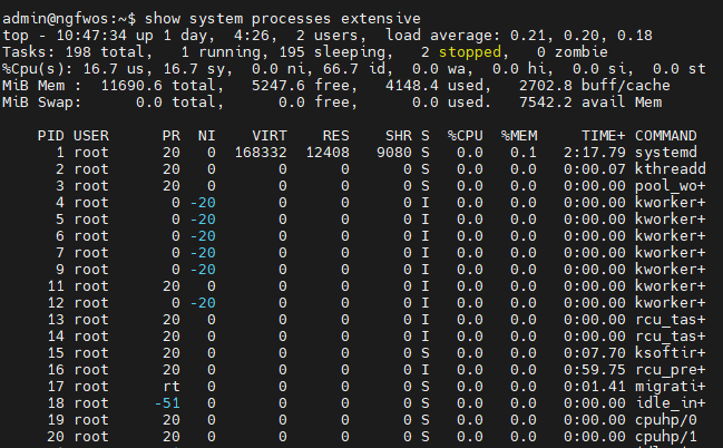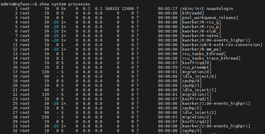 Команда предоставляет данные о состоянии запущенных процессов в системе в табличном виде (см. Рисунок – Базовую информации о процессах). Таблица содержит следующие поля: