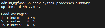 summary — отображает сводные данные о загрузке системы, включая время непрерывной работы (uptime) и среднюю нагрузку за последние 1, 5 и 15 минут, выраженную в процентах от максимально допустимого значения. (см. Рисунок – Сводная информация о загрузке системы).