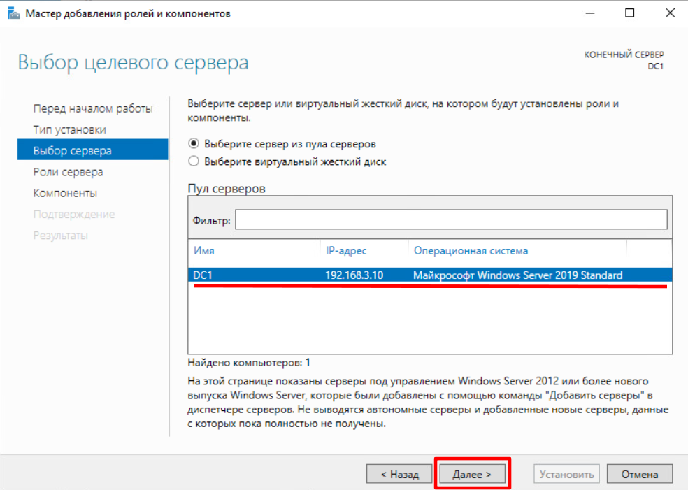 Выполнить настройку доменных служб Active Directory в соответствии с инструкциями мастера, не изменяя параметры по умолчанию. По завершении настройки перезагрузить компьютер.