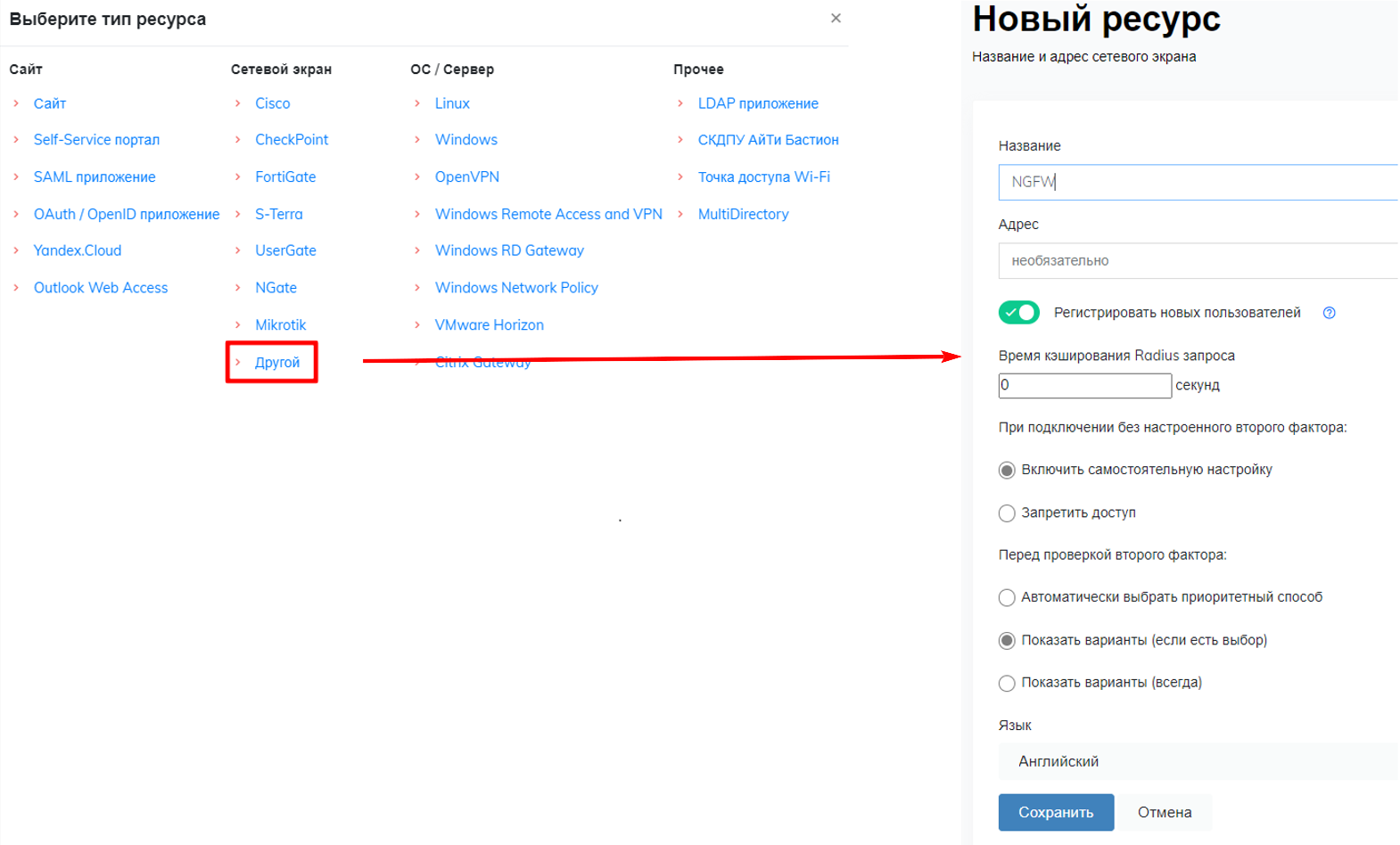 Инструкции по настройке ARMA Стена и Multifactor Radius Adapter представлены в соответствующих разделах: «Настройка ARMA Стена» и «Добавление Multifactor Radius Adapter».