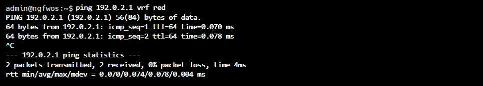 vrf2 up b2:6b:d5:c4:d2:34 noarp,master,up,lower_up eth2,pim6reg300