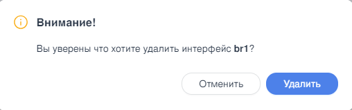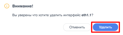 Подтвердить удаление нажатием кнопки «Удалить» в открывшемся окне (см. Рисунок – Удаление виртуального интерфейса).