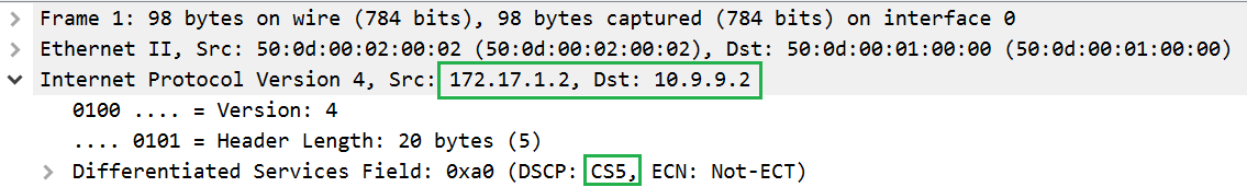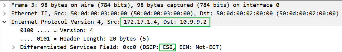 Next on the router VyOS2 we will change labels on all incoming traffic only from CS4-> CS6